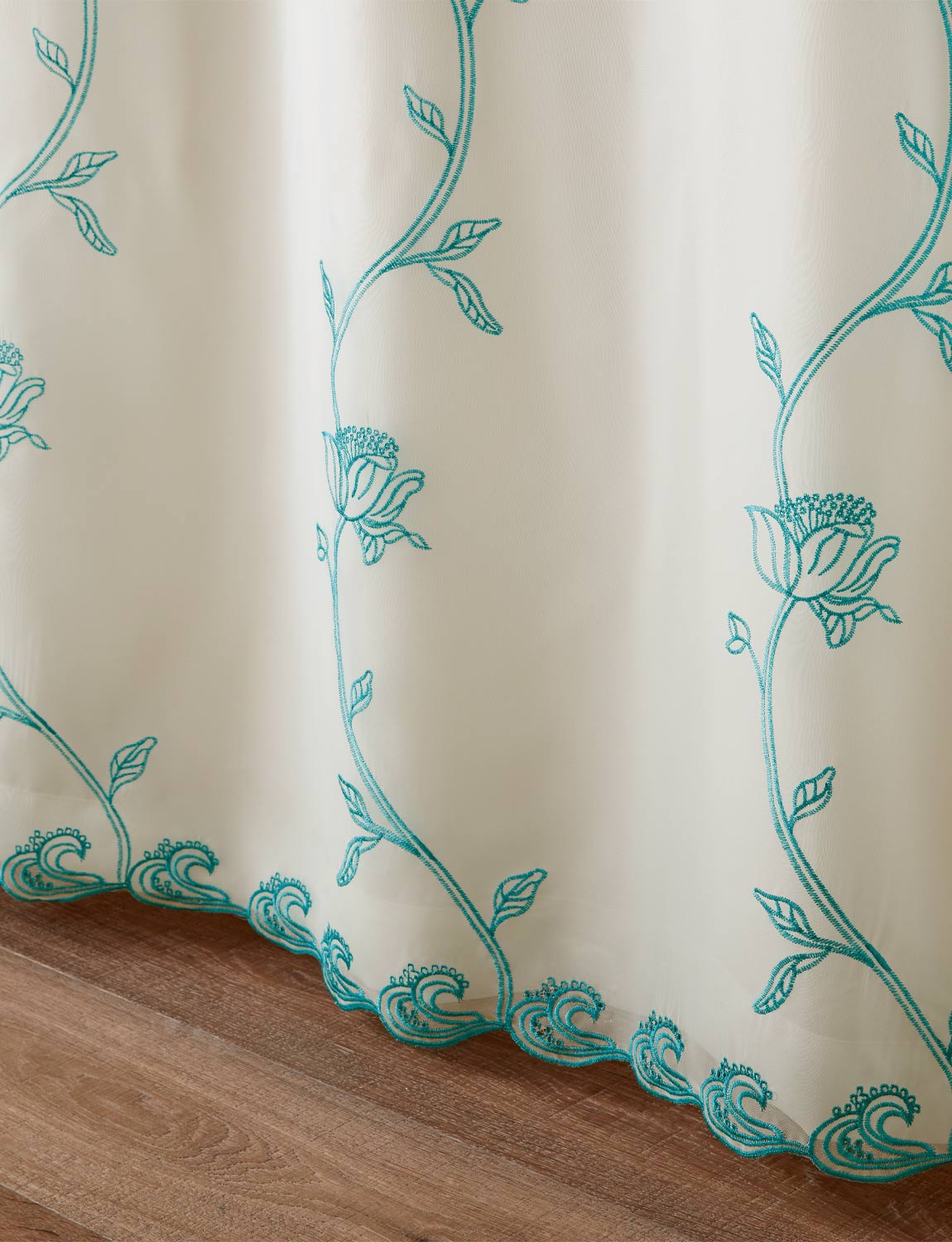 You’ll love the finely detailed embroidered trail, which is available in a choice of attractive colours to suit your room. The stunning finish of these fully lined Exeter voile curtains is topped off with a hand scalloped border. In short, everything about these curtains simply screams exceptional quality.